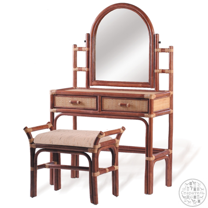 Старатель / Каталог / Плетеная мебель / Комплект туалетный столик с пуфом из натурального ротанга 10/04, мебель для дачи