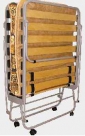 Кровать КР-11М С 858 Каркас кровати: металлическая тонкостенная мебельная труба с надежным полимерным порошковым покрытием. Спальное место: ламели с регулируемой жесткостью. Средние ламели двойные: 6 рядов  по 2 штуки.   Сам чехол матраса съемный (снимается на стирку), съемный матрас фиксируется к ламельному основанию с помощью застежек-липучек. Кровать оснащена роликами  для удобства перемещения в сложенном виде. Комплектация: матрас и чехол для хранения. Есть самооткрывающийся механизм складывания. Габариты: 83х200см, в сложенном виде высота 125см.           Максимальная  нагрузка: 160кг. Цена 7 350 руб. Цена со скидкой 6 980 руб.