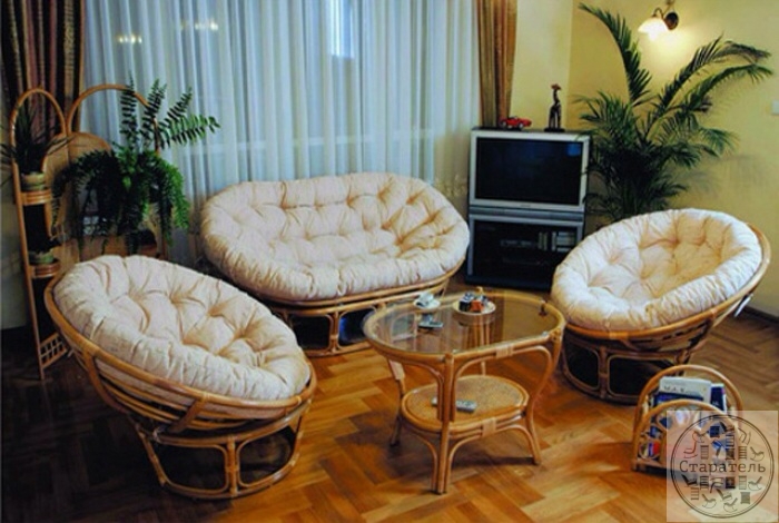• Акция! Комплект из 2-х кресел «Папасан», 1-го дивана «Мамасан» и кофейного столика